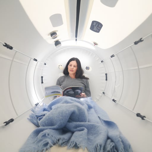 HBOT is a full body relaxing experience. You can lie back against the pillows in the Mito health hyperbaric chamber and sleep, meditate, work, read, or watch videos. Battery-operated devices are allowed in the chamber so you can take your phone, tablet or laptop in with you.